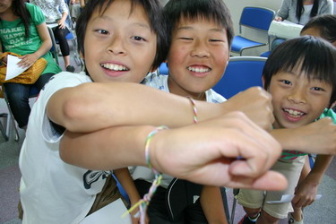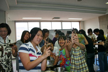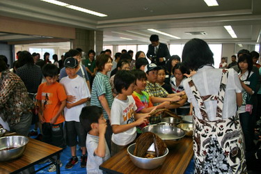 孔子学院院长冈本辉代志先生首先做了发言,他对孔子学院的经纬作了相关的介绍,并对大家的到来表示衷心的感谢。孔子学院日方副院长黎晓妮女士用电子课件的形式对中国端午节的来历,风俗等情况做了生动地介绍,引起了与会者极大的兴趣。 而三位来自中国大连外国语学院的孔子学院讲师现场教大家包粽子的活动则把整个交流会推向了高潮,与会者不论男女老幼都争先恐后地学包粽子,虽然粽子包得大小不一,形状有别,但是第一次见识并学会包中国的粽子,大家还是开心地不得了,特别是孩子们更是欢呼雀跃,兴高采烈。