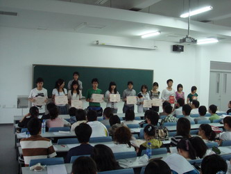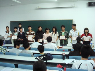大会首先由民管会副主任姜岸总结了本学期的民管会工作,本学期主要工作有:“迎奥运、讲文明、树新风,建和谐校园”DV公益宣传片拍摄制作,公寓文化节系列活动等。然后,民管会副主任郭佳鑫和李潇然分别宣读了民管会优秀学生干部名单和新学年离任名单,与会的学生处老师为优秀学生干部颁发了荣誉证书,为离任同学颁发了工作聘书。