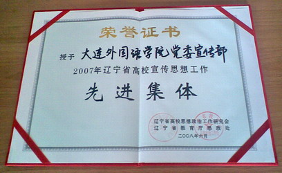 近日,在辽宁省高等学校宣传思想工作研究会会议上,我院宣传统战部被评为2007年辽宁省高校宣传思想工作先进集体,徐莉被评为2007年辽宁省高校宣传思想工作先进个人,姚素文当选为辽宁省高等学校宣传思想工作研究会副秘书长。