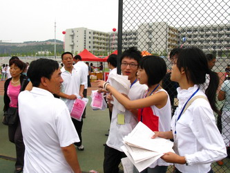 校园内,色彩鲜艳的迎新条幅,写着热情、激昂、催人奋进的标语;形式各异方便新生熟悉校园的指示牌让人感到温馨;学校、各院系、学生会、民管会、大学生记者团等校内学生组织为新生及家长在校内搭建的报到点内,迎新同学统一着装,色彩各异,他们肩扛手拉帮新生运行李,脸上、身上满是汗水,穿梭于熙熙攘攘的校园内。