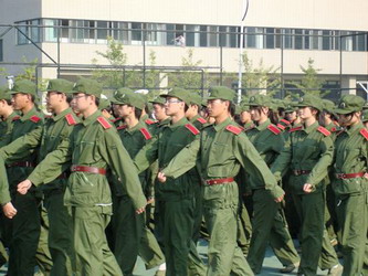 炎炎烈日下,日本语学院08级新生迎来了大学学习生活的第一堂课——军训。