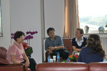 在院长办公室,葛华副司长和孙院长、朱院长进行了亲切地交谈。葛华副司长对我院能够在短短一年多的时间内建成这样一座现代化的雄伟大学感到惊叹;对全体大外人团结一心,勇于进取的精神感到赞赏;对现阶段的学院更名及博士点申报工作表示关切。院长孙玉华首先感谢国家教育部长期以来对于我院的关心和支持,孙院长说,大连外国语学院是一所以国际化办学为特色的充满了生机与活力的多科型外国语大学,近年来,学院的各项事业得到了长足发展,尤其是旅顺校区的建成为我院教育事业的进一步发展壮大开拓了更为广阔的空间,更名和博士点申报工作是下一步的工作重点,学院在抓实这两项工作的同时,继续强化国际化办学特色,发挥外语教学资源优势,为国家培养出更多高素质、高水平的外语人才。