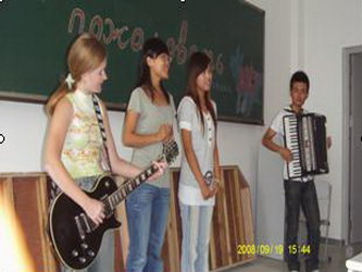 俄语系的接待工作有声有色。在同学们的带领下,大家来到403教室开始亲切的交谈。为表示对留学生们的欢迎,同学们特意安排表演了俄罗斯风情舞蹈、妙趣横生的单口相声、女声独唱《红莓花开》以及手风琴吉他合奏。会场气氛渐渐由开始的紧张严肃变得轻松愉快,友好温馨。受会场气氛的感染,来自俄罗斯的一位留学生拿起吉他,与我系同学合唱了一首中文歌《隐形的翅膀》,博得大家阵阵掌声。