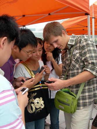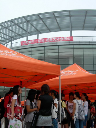 看着与老校区完全不同的大外新校区,留学生们顿生惊讶之意,全新的环境、全新的建筑、全新的设备都让他们深深地感受到了大外的变化和发展。在团委老师和各院系负责人的带领下,留学生们首先参观了图书馆,图书馆中优雅的环境、先进的设备、严密的管理制度及大量的藏书都让留学生们惊叹不已,让他们感受到了中国现代化发展之迅速。之后,留学生们回到大学生活动中心楼前,根据他们不同的语言将他们安排到各个院系,并由该院系的同学们带领到各院系进行参观、交流。