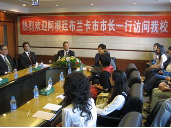 布兰卡市市长对该市在经济、文化、贸易等方面的发展进行了介绍,文化部长提出希望与我院签订互派留学生框架协议,并就开展合作办学的具体事宜与我院进行了探讨。