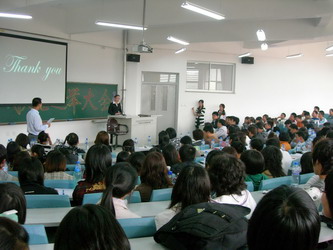 最后,院团委书记张皎讲话,她对学生会成功换届进行了总结,充分肯定了上届学生会工作的成绩,对新一届学生会主席团当选表示祝贺,并提出了三点要求和希望:一、听党的话,高举团旗跟党走。落实党的十七大和团中央十六大精神,从小到大,每个人成长的过程中,所有的活动的开展、所有荣誉的取得都是共青团赋予每一个青年的,共青团作为党的助手和后备军,归根结底都是共产党给予的,所以学生会组织要把学生会的各项工作作为大学生思想政治教育的载体,紧紧围绕学校的大局和党政的中心开展工作。听党的话,永远高举团旗跟党走!二、听青年的话,充分反映团员青年的心声。了解青年,才能知道青年真正想什么,知道青年需要什么样的活动,要在全校范围内开展青年思想的大调研,倾听青年的心声,使学生会开展的活动达到思想政治教育和大学生兴趣爱好的最完美的结合。三、为青年说话,进一步扩大党领导的青年群众基础。从青年中来、到青年中去。时时刻刻心系青年,把团员青年的利益放在第一位,充分表达青年的心声,让团员意识深入到每个团员青年的心中。“聚是一团火、散是满天星。”希望我们聚在一起像一团火一样熊熊燃烧,散开之后像满天星斗一样各自发出璀璨的光芒,用这种激情感染身边的每一个团员青年。张书记的慷慨陈词赢得了全场师生经久不息的掌声。