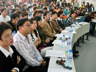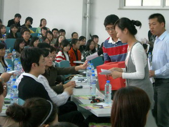 校学生会副主席刘洋主持了大会。学生会主席王诗明首先对学生会一年来的工作进行了总结。随后经本人申报、各院系分团委书记、辅导员推荐等层层选拔,来自于7个院系的12位候选人,进入了最后的角逐。在经过个人竞聘演讲及紧张的现场答辩后,由评委组公开投票,7位候选人最终脱颖而出,组成了大连外国语学院08—09学年度学生会主席团。在此过程中评委组各位老师有针对性的提问和经典的点评博得了在场师生的热烈掌声。最终,软件学院06级学生黄科诚以高票当选校学生会主席 ,日本语学院刘前方、英语学院李晓、国际艺术学院徐鹤瑄当选新一届副主席,软件学院石倩、国际艺术学院杜瑶分别担任兼管青年志愿者协会和社团的副主席、秘书长由英语学院张璇担任。