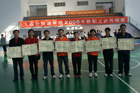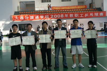 奥运走了,大外来了。金秋十月,由学院工会主办,体育教学部协办的我院2008年教职工乒乓球赛于10月20日在旅顺校区球类馆鸣哨。9个基层分会共组成九支男队、八支女队,100余名教工参加了团体比赛,24日比赛圆满结束。