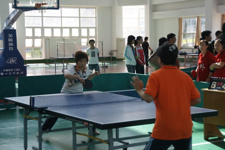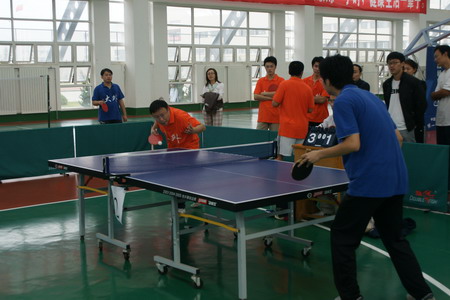 举办乒乓球赛,不仅是为了推动我院群众体育运动的发展,也是为了把那些对乒乓球运动兴趣日升的教职工推向赛场,借以不断提高我院乒乓球的参赛水平。通过五天的比赛,我们不但感到了全院广大教职工积极参与的热情,而且也依稀地看到了大外乒乓球整体水平的上升态势。