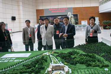 随后,在图书馆一楼大厅,副院长朱公巍结合“ 大连外国语学院规划模型 ” 沙盘详尽地介绍了新校区从选址、招标、动迁、开工到2007年4月万余名师生喜迁新校区的过程。他说,大外新校区的建设离不开省、市、区各级领导的支持和关心,新校区布局合理,功能分区齐备,在设计理念上充分体现了 现代化、人文化、智能化和数字化的特点。新校区的建设使学院彻底摆脱了办学空间狭小的束缚,为学院的更快发展搭建了一个更为广阔的平台。相信在各级领导及社会各界的关心和支持下,学院的教育事业将以新校区的建成使用和评估优秀为契机蓬勃发展,再创辉煌。