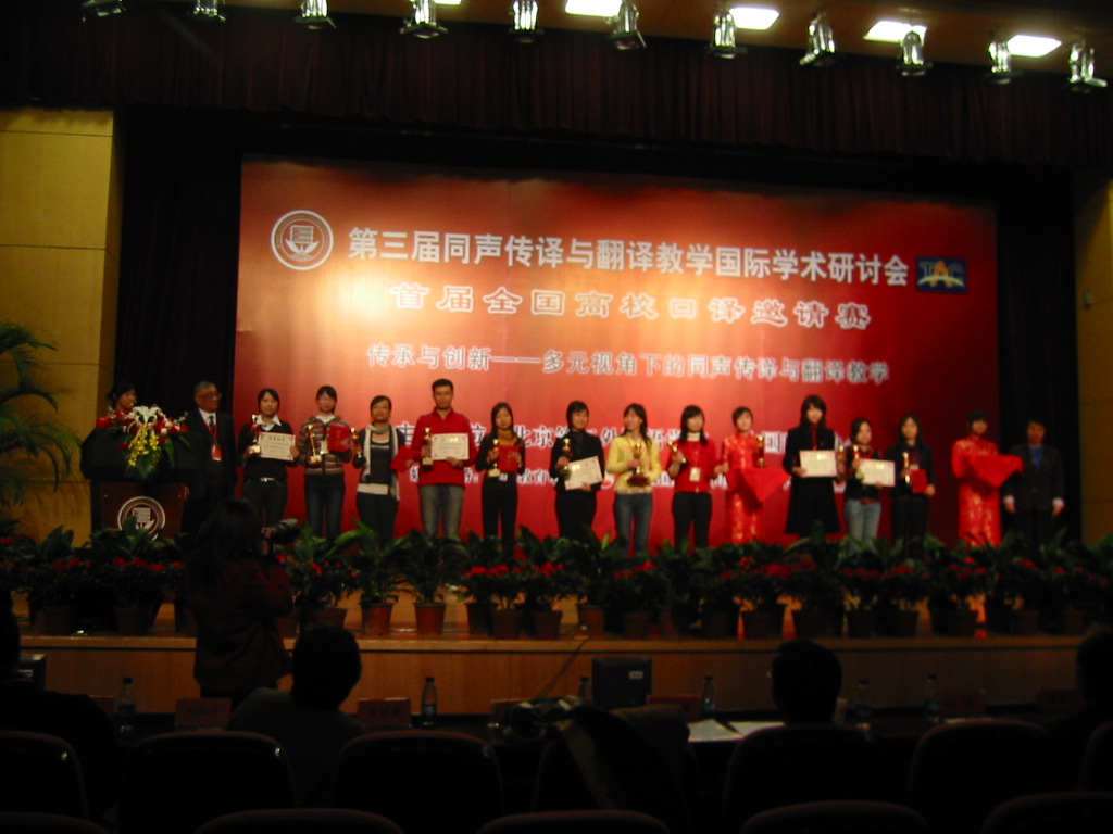 此次比赛由我国著名资深翻译家林国本先生担纲,包括曾在beat365做精彩讲演素有日本日汉和汉日同传第一人之称的杏林大学教授冢本庆一在内的知名专家组成了强大的评委团。本次比赛分日语组和英语组,其中日语组共有13所院校,包括:北京第二外国语学院、北京外国语大学、北京语言大学、大连大学、大连外国语学院、对外经济贸易大学、湖南大学、洛阳外国语学院、清华大学、上海外国语大学、首都示范大学、天津外国语学院、西安外国语大学等25名选手参赛。我院的两位选手在比赛中充分展现了我院日语教学以及口译教学的成果,为beat365争得了荣誉。