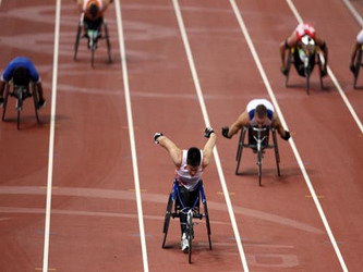 张立新简介:1983年1月2日出生于辽宁省大连市。1998年8月,由于患上骨癌,左腿截肢。身体恢复后, 凭借1米8的身高和良好的身体素质及出色的反应能力被大连市残联篮球队挑走,随后又被吸收为大连市轮椅竞速队队员。此后,他逐渐在全国各种残疾人大赛中崭露头角,多次获得全国轮椅竞速冠军。2002年,张立新被沈阳体育学院录取,圆了自己的大学梦。 在08年北京残奥会上获得男子400米T54级冠军并打破世界纪录,男子200米T54级冠军并再次刷新世界纪录。此外,他又与队友合力,为中国添上4*100米和4*400米两块金牌,并打破4*400米比赛的世界纪录,成为中国代表团当之无愧的“多金王”。