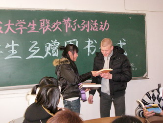 最后中俄学生代表们互相赠送书籍,并在书的扉页上用各自的母语写下祝辞。互赠的图书中涵盖了关于人文地理、文学名著等多方面知识。对推进中俄文化交流,推动汉语及中国文化在俄罗斯青年中的推广有积极而深远的意义。