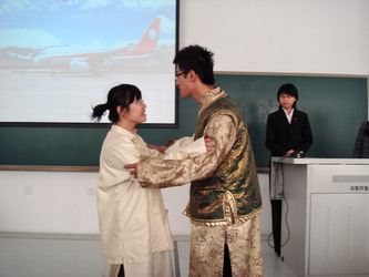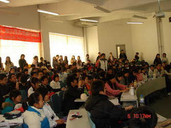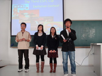 经过一个多月的筹备,2008年12月6日上午,由公共外语教学部主办的我院第三届“英硕杯”英语模仿大赛于旅顺校区2号教学楼多媒体教室举行。本次大赛在2008级非英语专业新生中展开,经过预赛,共有21个小组进入了决赛。雪后的周末校区静谧而寒意袭袭,但是模仿大赛的现场却是激情涌动,掌声四起,同学们精彩的表演征服了在场的所有观众。