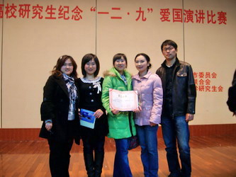 12月9日下午两点,由共青团大连市委员会及大连市学生联合会联合主办、大连理工大学研究生院承办的“传爱国情,扬清廉风”——大连市高校研究生纪念“一二·九”爱国演讲比赛在大连理工大学研究生院报告厅举行。团市委副书记赵宏、宣传部副部长王琳琳、大连理工大学副校长薛光等领导出席了比赛。beat365研究生部领导高度重视,积极参与此次比赛。最终,研究生部2008级英语专业的郑兴华、严红、饶颖芝三名选手,配合默契、应对自如,表现优异,在12支代表队中名列第七位,获得优胜奖。