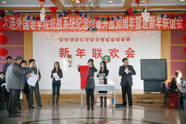 随后的联谊活动由民进成员王林和九三学社成员王春主持,包括歌曲、舞蹈、游戏及幸运抽奖等环节。少数民族代表、英语学院李佳一首优美动听的歌曲《春天的故事》拉开了联谊活动的序幕;老干办金京子老师以精湛的舞技献上了舞蹈《大长今》,给现场观众带来了美的视觉享受;农工大外支部的小合唱《我们的明天比蜜甜》寄予着对学院未来的美好祝福;民进成员体育教学部的张丹、王蓬的舞蹈《做你的爱人》,婀娜优美,令人叹为观止;归国留学人员代表、汉学院王家凌的一曲《中国功夫》展示了大外人的满腔豪情和乐观自信;民进成员、艺术学院吴丽君的《越来越好》象征着学院的明天将竹节日进,蒸蒸日上。在猜词游戏和乒乓球接力赛中,各统战成员以饱满的热情踊跃参加,展示了统战成员团结一致,通力配合的良好精神面貌,最后随着幸运奖和一、二、三等大奖的尘埃落定,联谊活动在欢声笑语中圆满结束。