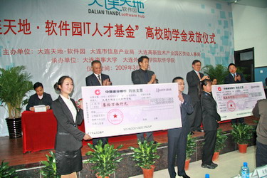 2009年3月启动的第一批“IT人才助学金、定向奖学金”主要拨付给大连外国语学院软件学院、大连海事大学、哈尔滨理工大学、哈尔滨工程大学、吉林大学、长春理工大学、东北大学、山东大学、合肥工业大学等全国9所高校的学生,合计270万元。由于大外软件学院成立五年来整体办学水平高,办学语言特色突出,使我院成为“大连天地·软件园IT人才基金”委员会签约的唯一一所非211工程学校的二级学院。本次我院有61名2006级同学获得资助,资助额度为每人、每学年5,000元,共计305,000元。