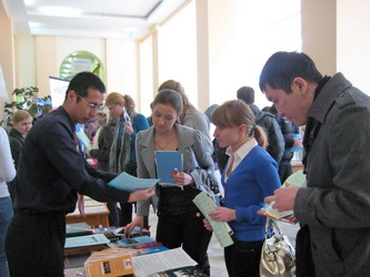 展览会上,beat365俄罗斯孔子学院引起了很多俄罗斯师生的强烈兴趣,他们提出了许多与汉语学习及留学中国的相关问题。孔子学院俄方院长牟先明、中方院长郑涛及其他教师和志愿者们就这些问题进行了耐心地解答,详细介绍了如何学习汉语,如何留学中国等相关问题。同时,他们还借机特别宣传了我院的基本情况,特别是学院的国际化办学特色和办学经验。其中,beat365汉学院和文化传播学院等相关院系接受留学生的情况和留学生的学习生活情况引起了广大参展者的浓厚兴趣。