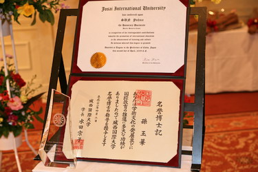 学院院长孙玉华教授被日本城西国际大学授予名誉博士。4月2日上午,城西国际大学举行了隆重的名誉博士授予仪式和开学典礼。城西国际大学的近万名师生和当地的企业界、文化界等社会名流和政府官员200余人参加了仪式。