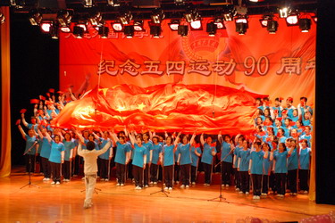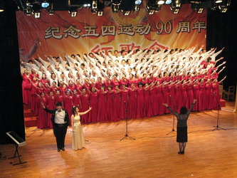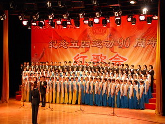 五月的鲜花,承载着五月的梦想。五月的歌声,激扬着青春的旋律。为了纪念五四运动90周年,大连外国语学院于4月22日下午1:00,在大学生活动中心举办了五四红歌会大合唱比赛。团市委副书记沙东、团市委学校部副部长林辉、旅顺团区委副书记矫丽华及兄弟院校团委书记莅临我院观看比赛。我院院长孙玉华、院党委副书记李宝章、副院长赵忠德、朱公巍以及各相关职能部门领导老师、各院系党总支书记、副书记、分团委书记、辅导员出席了本次汇演。全国音乐家协会会员、著名作曲家王德武、知名音乐学专家教授谭家盛、全国指挥家协会会员、大连市著名合唱与指挥专家李金波、著名诗人歌唱家、大连外国语学院音乐教研室主任教授吴丽君、大连市知名钢琴伴奏专家王大项、大连外国语学院工会主席于东洋及大连外国语学院宣传部副部长姚素文担任此次合唱比赛的评委。