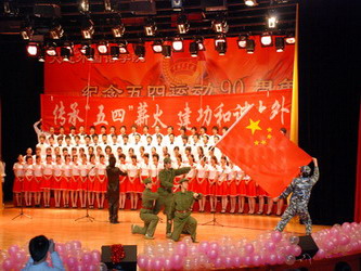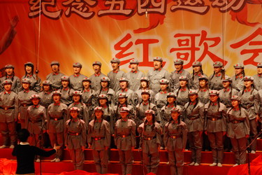 一段回顾九十年来青年不断追求真理、不畏牺牲的幻灯片拉开了全场比赛的序幕,点燃了在场每一个人的青春激情。德语系欢快的《阿拉木汗》和荡气回肠的《黄水谣》将全场观众带入了正式比赛,应用英语学院的《在灿烂的阳光下》、日本语学院的《红星闪闪》以及英语学院的《长江之歌》、俄语系的《保卫黄河》充分地展示了大外学子的激情与朝气;韩语系的《爱我中华》、法语系的《红旗飘飘》、软件学院的《歌唱祖国》则表达了青年学生对祖国的无比热爱;国际艺术学院、文化传播学院深情演绎的歌曲《走进新时代》及研究生部选送的《光荣啊,中国共青团》将对和谐社会的渴望以及对共青团的挚爱传达给在场的每一位师生,旅游与酒店管理学院的《军民团结一家亲》以新颖的红军服、变换的队形和团结的精神风貌仿佛把我们带到了那个充满激情的革命年代。无论是台上尽情演绎的歌者,还是台下忘我呐喊的观众,都在歌声中感受到了那激励了一代又一代青年人的五四精神。