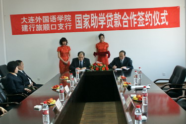 签约仪式在和谐友好的气氛中展开。首先,李宝章副书记代表学院向建行大连市分行及有关支行长期以来为我院贫困学生提供国家助学贷款表示感谢。他说,设立国家助学贷款充分体现了党和政府对贫困学生的关怀,对贫困学生本人、家庭、学校和社会都具有重要意义。建行的领导和职工为国家助学贷款提供的热情周到服务体现了对高等教育的关怀和支持。他希望双方今后在多方面开展交流与合作,使大外与旅顺口支行成为好邻居、好伙伴、好朋友。