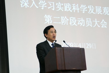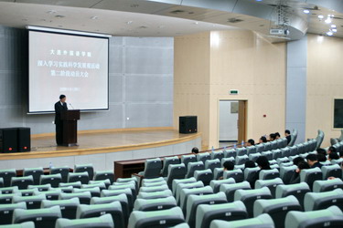 4月29日上午,我院深入学习实践科学发展观活动第二阶段动员大会在旅顺校区图书馆国际报告厅召开,标志着我院学习实践科学发展观活动第一阶段圆满结束,由学习调研阶段顺利转入分析检查阶段。学院领导班子成员及科级以上干部、总支委员、支部书记参加了大会。大会由学院党委副书记李宝章主持。