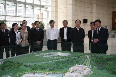 首先,唐部长一行在学院领导姜连平、孙玉华、李宝章、张守鹏、赵忠德、朱公巍,院长助理徐浩特等陪同下参观了新校区。在图书馆,学院副院长朱公巍在图书馆一楼大厅的沙盘前为各位领导详细介绍了大外新校区的建设情况。图书馆副馆长张泽梅介绍了图书馆的建设、管理、布局、人性化服务等情况,并引领各位领导参观了期刊阅览室、电子阅览室和密集书库等; 在现代教育技术中心,唐部长一行先后参观了网络中心、自动录播教室、数字录音室、卫星节目接收监控室以及同声传译教室等。现代教育技术中心主任赵余博介绍了校园网等项目的建设和教学应用情况。参观过程中,唐部长一行对我院建设发展所取得的成绩给予了充分肯定。