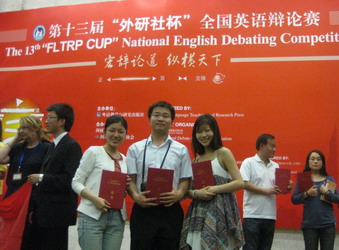 2009年5月12日,第十三届“外研社杯”全国英语辩论赛在北京举行,由我院英语学院黄滔、陈婧和陆文玥三位老师指导选派的霍姝屹、李亚军两位同学获得全国二等奖的好成绩。