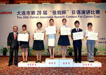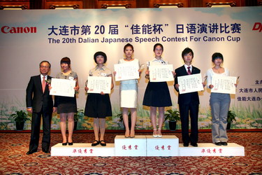 近日,由大连市人民对外友好协会和佳能大连办公设备有限公司共同主办的第20届大连市“佳能杯”日语演讲比赛决赛在富丽华大酒店多功能厅落下帷幕。大连市委常委、副市长戴玉林,中日友协副会长文迟,日本佳能株式会社社长内田恒二出席比赛现场并为获奖选手颁奖。我院院长孙玉华也应邀出席了本次比赛。