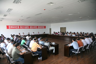 经院党委研究,并报省委学习实践科学发展观活动工作领导小组同意,我院深入学习实践科学发展观活动正式转入第三阶段即整改落实阶段。6月17日,我院召开转段动员大会,学院领导班子成员、全体中层干部、各总支直属支部委员、支部书记参加了会议。学院党委书记、深入学习实践科学发展观活动领导小组组长姜连平作重要讲话。大会由学院党委副书记李宝章主持。