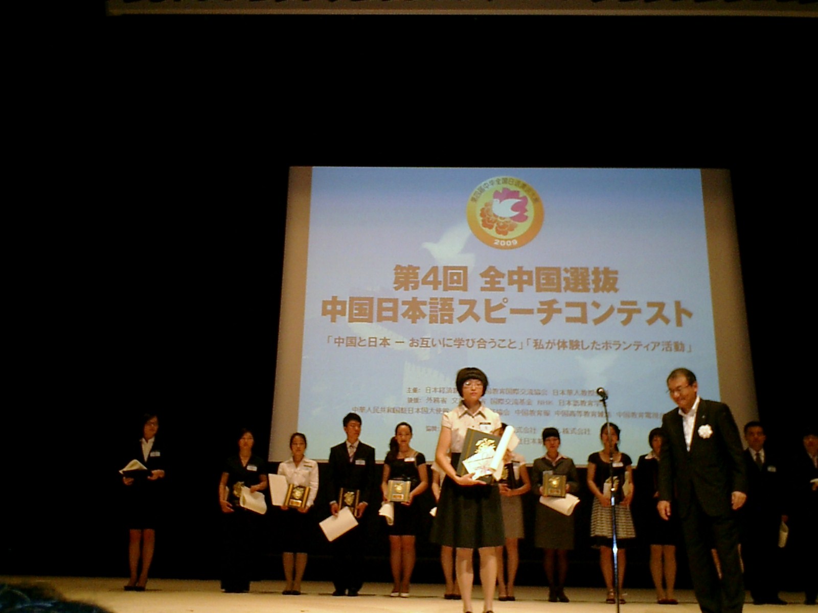“中华全国日语演讲大赛”是由中国教育国际交流协会、日本经济新闻社、日本华人教授会及日本电通株式会社共同举办的全国性赛事。该项比赛以高校大学生为参赛对象,分预赛和决赛两部分举行。其中,预赛分京津、东北、华北、华东、华中、华南、西北和西南等八个赛区分别举行。最终,各赛区获得前两名的共计16名选手进入7月13日在日本东京举行的决赛。