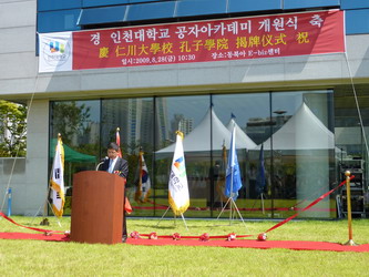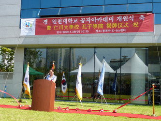 仁川大学校长安庆洙在讲话中说,世界都在关注正在发展的中国,尤其是高速增长的中国经济和提供发展动力的中国文化,仁川大学孔子学院将从现实出发,为巩固中韩两国友好关系作出积极贡献。