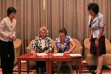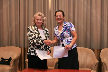 9 月17日下午4:30,中俄大学校长论坛闭幕后,孙玉华院长会见了比斯科国立师范大学校长尼基沙耶娃一行,双方在友好的气氛中进行了深入的交流,在前期多次探讨的基础上双方签署了交流合作协议。双方约定,两校在教育科研和其他领域本着发展、合作、有成效的原则,在学生互派、教师交流、发表作品、共同进行项目开发等方面进行广泛的合作,共同发展。