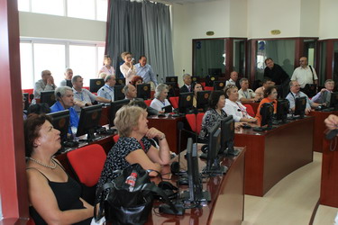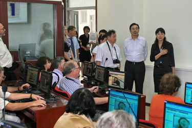 随后,来宾们参观了现代教育技术中心的同声传译室、计算机机房。在IPTV监控室,俄罗斯来宾惊喜地欣赏到了俄罗斯的电视节目,对我院教学设施的先进性赞不绝口。