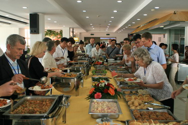 中午,中外来宾在我院教工食堂共进学院精心准备的自助午餐。