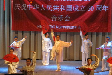 在中华人民共和国60华诞,中俄建交60周年之际,受国家汉办委托,大连外国语学院巡演团一行24人赴俄罗斯巡回演出。巡演团于9月30日至10月6日期间先后在大连外国语学院与新西伯利亚国立技术大学合办的孔子学院、新西伯利亚国立大学孔子课堂、托姆斯克孔子学院、库兹巴斯警官大学及西伯利亚国立工业大学汉语中心进行了五场精彩的演出,得到了俄罗斯各界人士的高度关注和普遍赞誉。