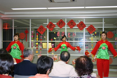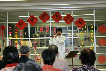 开学典礼结束后,孔子学院的学生及社会各界人士与中国留学生一起举办了别开生面的国庆交流活动。留学生们表演了笛子独奏、诗朗诵、民族舞蹈等精彩的文艺节目,孔子学院的学生们还用汉语合唱了中国歌曲《好一朵茉莉花》。最后,一曲饱含对祖国祝福的大合唱《今天是你的生日》把晚会推向了高潮。 整场晚会洋溢着欢乐、和谐、喜庆的氛围。晚会结束后,仍有众多饶有兴趣的人士在孔子学院观看了北京的国庆晚会。