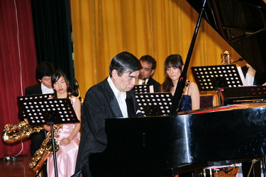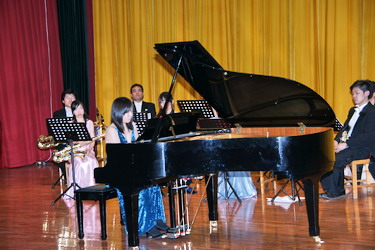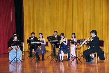 担任本次演出活动的是来自日本《冈山萨克斯管研究所》的10重奏专业萨克斯管合奏团。演出先以一首赫尔伯格组曲前奏曲拉开了序幕,接下来是月光奏鸣曲、蓝色狂想曲等优美动听的乐曲。我院音乐学专业钢琴教师米雪也演奏了李斯特的作品匈牙利狂想曲第八首;音乐学专业学生王源吹奏了一首海顿的作品《c大调协奏曲》。