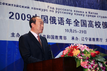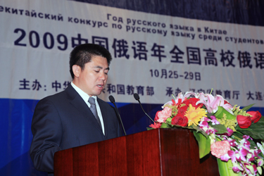 辽宁省教育厅国际交流合作处处长李庆才宣读了大赛主委会主席、辽宁省教育厅厅长魏小鹏的贺信。贺信中说,在中国“俄语年”期间,辽宁省教育厅承办了丰富多彩的一系列活动。这些活动强化了我省各高校与俄罗斯教育领域的交流与合作,提升了合作的质量和内涵,为我省高级专业俄语人才的培养奠定了坚实的基础。在我省高校中,以国际化办学特色为基础,无论合作的内容与形式,大外所取得的成果都在全国居于领先地位。本次大赛将成为我国高校一次良好的教学成果展示和交流平台,为国家选拔优秀俄语人才奠定良好的基础。