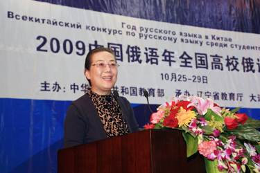 10月25日9:00,由国家教育部主办,辽宁省教育厅和我院承办的2009中国“俄语年”全国高校俄语大赛在我院旅顺校区大学生活动中心隆重拉开帷幕。出席开幕式的中方领导和嘉宾有辽宁省教育厅国际交流合作处处长李庆才,我院党委书记姜连平,我院院长孙玉华,中国俄语教学研究会副会长、上海外国语大学俄语系主任郑体武,黑龙江大学俄语学院教授邓军;俄方代表和嘉宾有俄罗斯驻沈阳总领事波德别列兹科先生及夫人,俄罗斯海外文化中心发展促进基金会主席格罗杰茨基先生及其代表团成员。来自全国71所院校的参赛选手、指导教师、特邀评委近300人参加了开幕式。开幕式由学院党委副书记李宝章主持。