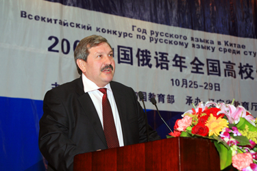 俄罗斯驻沈阳总领事波德别列兹科发表了讲话。他表示,此次大赛规模之大、内容之丰富、形式之多样令人赞叹。10月10日,中国国务委员刘延东女士、俄罗斯政府副总理茹科夫亲自为大外俄语中心揭牌和剪彩,更是为两国交流合作增添了光彩。这一系列活动的成功举办对俄罗斯“汉语年”的顺利开展提供了有益借鉴。作为两国全面推进战略协作伙伴关系的重要举措,两国互办国家年后,又互办语言年,对于深化和扩大两国人文合作,增进两国人民的友谊和相互理解,起到了巨大的、不可替代的作用。