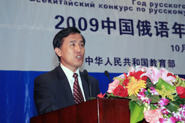 开幕式上,我院党委书记姜连平宣读了中俄语言年中方主委会执行副主席、教育部副部长郝平的贺信。贺信中说,2009中国“俄语年”全国高校俄语大赛是中俄“国家年”教育领域的机制化项目之一,也是中国“俄语年”框架内的一项重要活动。希望大赛本着公平、公正、公开、透明的原则,充分发挥大赛本身良好的展示平台,加强全国各开设俄语专业院校间的交流,突出中国“俄语年”的主题和特色,为国家选拔储备优秀的俄语人才,进一步推动中国俄语教育事业的新发展,为中俄友好事业做出新的更大贡献。