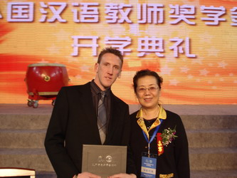 国务委员刘延东在开学典礼上作了长篇致辞,她阐述了汉语国际推广及培养本土汉语教师的意义,对中外学生提出了殷切期望,同时也对各培养高校提出了希望和要求。会上,领导和嘉宾还为奖学金生颁发了证书,我院来自爱尔兰的留学生詹姆斯作为代表上台领取了证书。