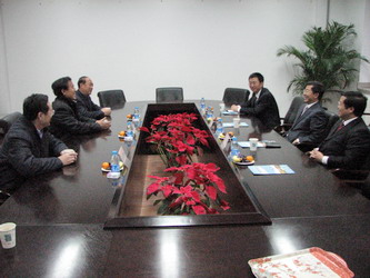 2009年11月12日下午,大连保税区党组书记、管委会主任卢林,大连保税区管委会劳动人事局局长林温福,大连保税区管委会办公室主任张伟一行三人来我院考察调研。我院党委书记姜连平、党委副书记李宝章、副院长赵忠德与卢林主任一行在机关楼413会议室进行了会谈。