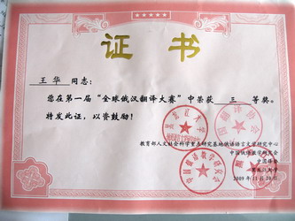 在由教育部人文社会科学重点研究基地俄语语言文学研究中心、中国俄语教学研究会、中国翻译家协会及黑龙江大学俄语学院联合举办的“首届全球俄汉翻译大赛”中,俄语系学生王华获得三等奖,杜晶获得优秀奖,俄语系获得大赛组织奖。据悉,此项大赛参与范围广泛,涵盖了高校师生以及来自各行各业的俄语翻译爱好者,共收到参赛译文569篇。