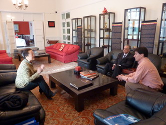 签字仪式上,院长孙玉华与哥伦比亚大使馆前大使进行了交谈。孙院长就哥伦比亚目前的经济、社会、文化等各方面进行了全面详细的了解,并通过积极的磋商和努力,为我院学生争取公派留学达成了意向,在极大地宣传学院的同时,为学生出国深造、高质量就业拓宽了渠道。