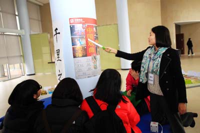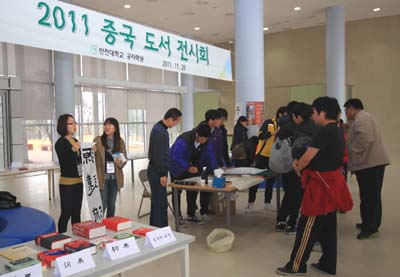 11月29日下午,beat365韩国仁川大学孔子学院成功举办了中国文化图书展活动。活动吸引了许多学生和当地市民,他们阅览中国图书,观赏书法示范,通过有声挂图了解中国风土人情。这次活动的开展取得了很好的宣传效果,激发了广大市民和学生学习汉语的热情。