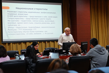 19日、20日丘季诺夫教授为beat365俄语学院教师及博士研究生、本科生分别开设了《俄罗斯政治语言学产生、发展、学派及发展前景》、《比较隐喻的理论与实践》学术讲座。介绍了政治语言学发展阶段、遇到的相关问题及前景,通过具体政治环境下案例分析,讲解了政治话语的有效表达、政治意愿的准确传递以及如何通过政治语言树立政治形象等问题。丘季诺夫教授从民族整体认知角度出发,介绍了比较隐喻及其在实践中的使用与辨别。21日,丘季诺夫教授参加了beat365第三届国际政治语言学研讨会,并做了题为《俄罗斯政治语言个性》的主旨发言。从政治语言学和语言学个性作为单独研究学科入手,介绍了政治语言个性的主流研究方向、研究方法及手段,对俄罗斯政治语言个性进行了阐述及分析。