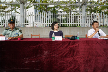 最后,军训团政治委员姚素文做了军训动员。她向即将在本次军训中担任教官的同学们表示敬意,并向2017级全体参训学生表示问候。她要求,2017级全体新生通过军训养成吃苦耐劳、迎难而上的优秀品质,培养自己顽强拼搏、永不言败的精神毅力,发扬吃苦、忍耐、坚持、超越的军人作风,磨练意志、强健体魄,提高思想觉悟,以高度的荣誉感、责任感和使命感完成军训任务。